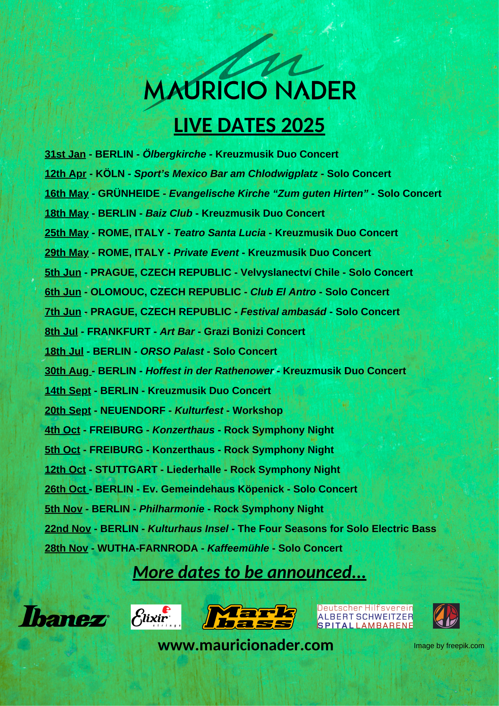 Mauricio is thrilled to present this special concert in Berlin, where, for the first time, he will perform his complete solo bass adaptation of The Four Seasons, along with some additional surprises. This will be an emotional and unforgettable night, showcasing a repertoire that differs from his usual solo bass performances.