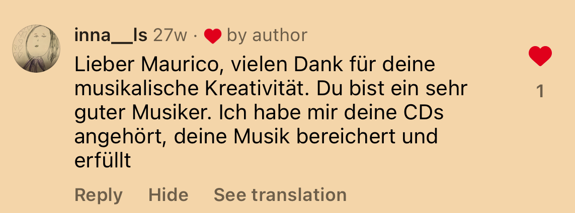 „Wir waren mit Mauricios Auftritt bei unserer Firmenveranstaltung sehr zufrieden – ebenso wie alle unsere Mitarbeitenden. Ich empfehle sein Live-Konzert mit Begeisterung – sowohl für private Firmenveranstaltungen als auch für kulturelle und öffentliche Events.“