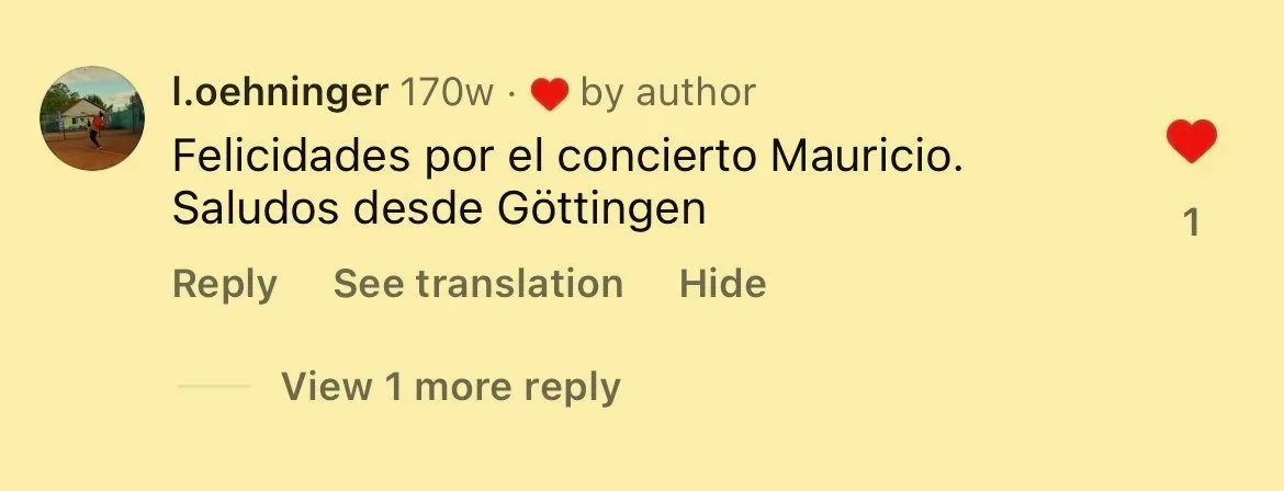 „Die Show war absolut erstaunlich! Ich war schon auf vielen Konzerten in meinem Leben, aber dieses war etwas Besonderes. Mauricio war völlig in sein Spiel vertieft, und es war offensichtlich, dass er ein echter Profi ist. Aber am wichtigsten: Er hatte wirklich Freude daran. Und wir auch. 100 % empfehlenswert!“